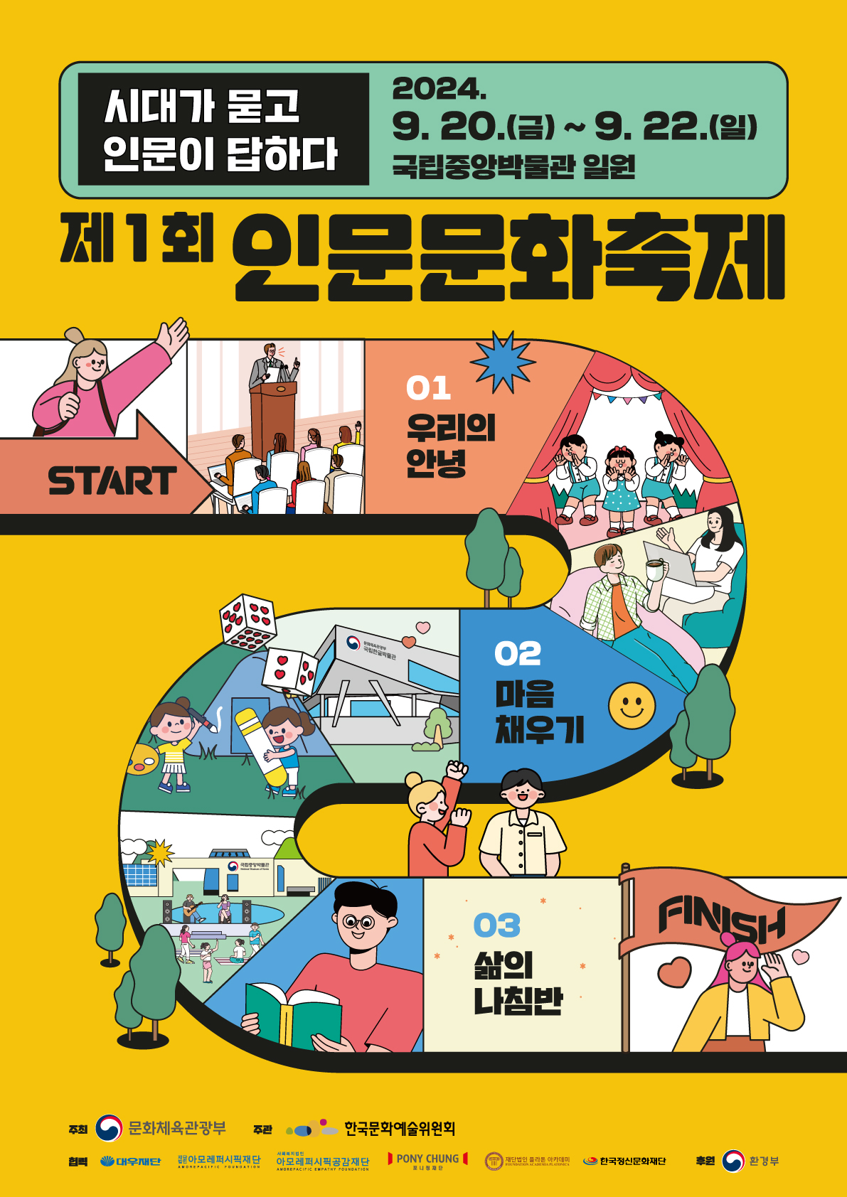 문화체육관광부(장관 유인촌, 이하 문체부)는 9월 20일부터 22일까지 국립중앙박물관, 아르코꿈밭극장 등에서 ‘시대가 묻고 인문이 답하다’를 주제로 ‘제1회 인문문화축제’를 개최한다.